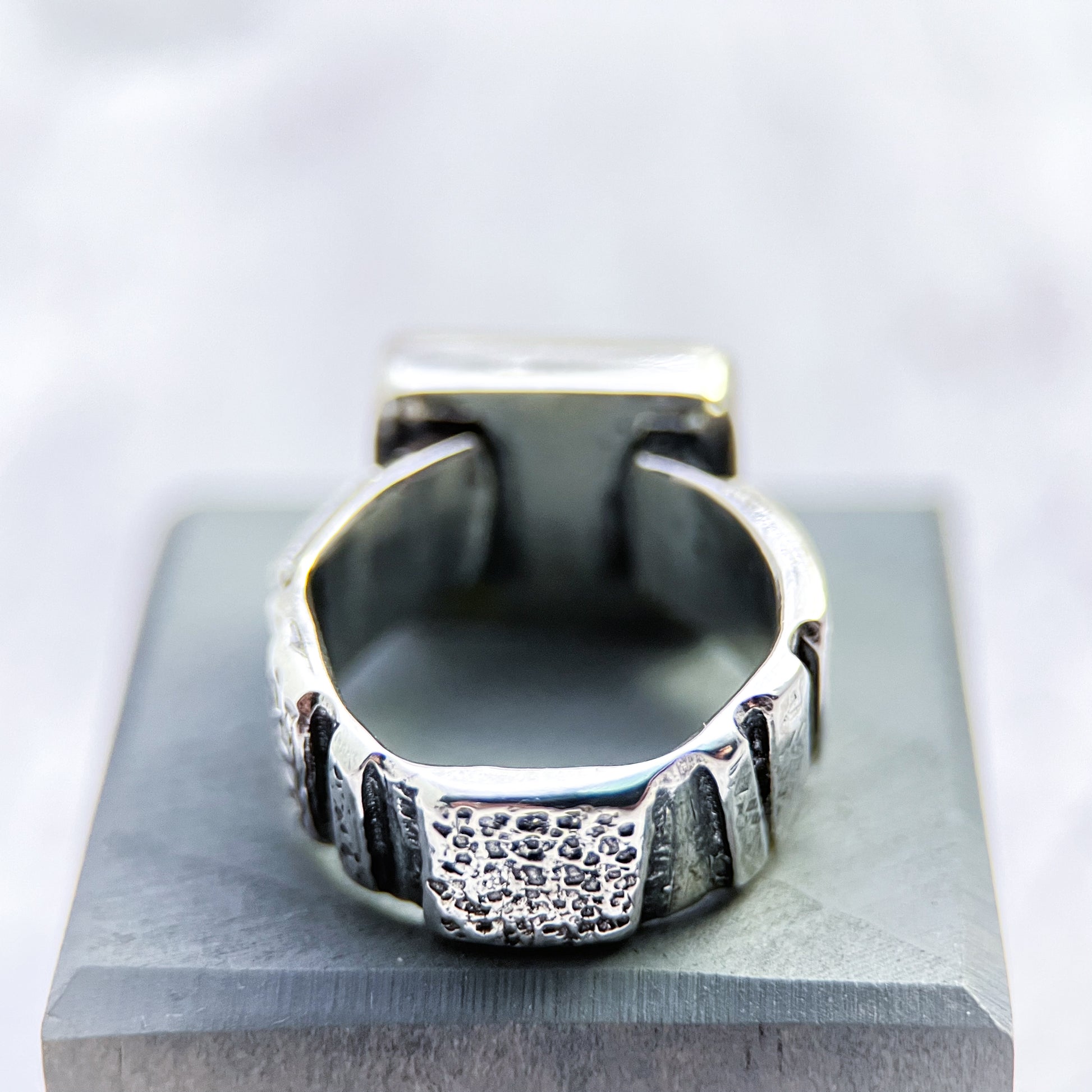 - Details: Fused + textured band, substantial weight, hand-built setting